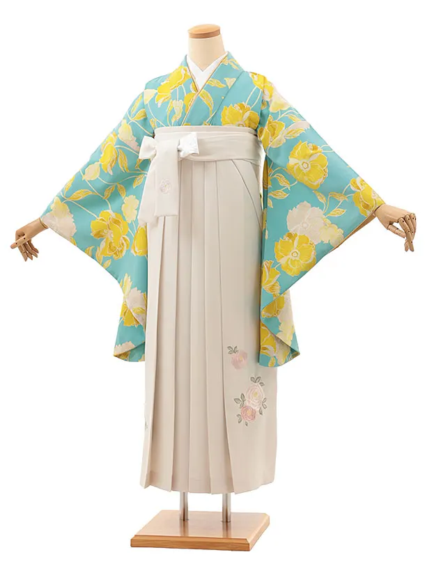 卒業式袴レンタルV622 紅一点 エメラルドアネモネ×アイボリー