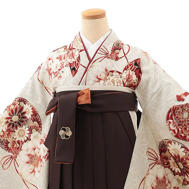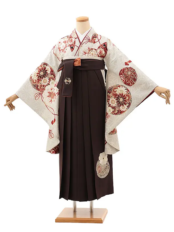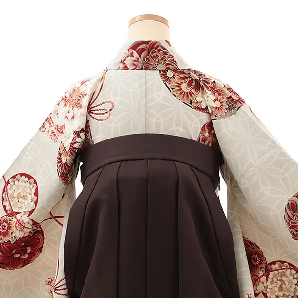 卒業式袴レンタルV625 JAPAN STYLE ベージュ華玉×こげ茶