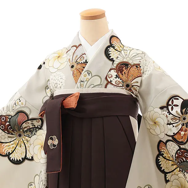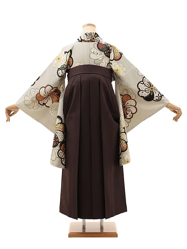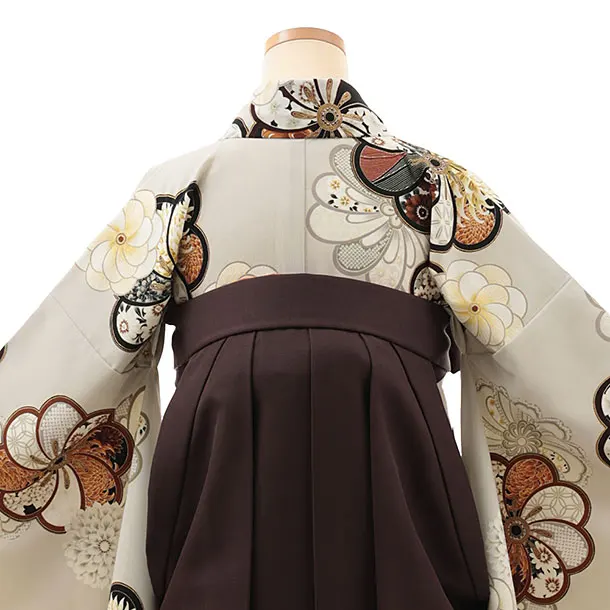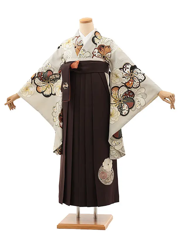 卒業式袴レンタルV634 JAPAN STYLE グレージュ捻り梅×こげ茶