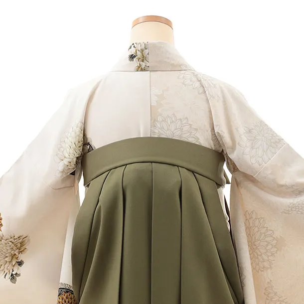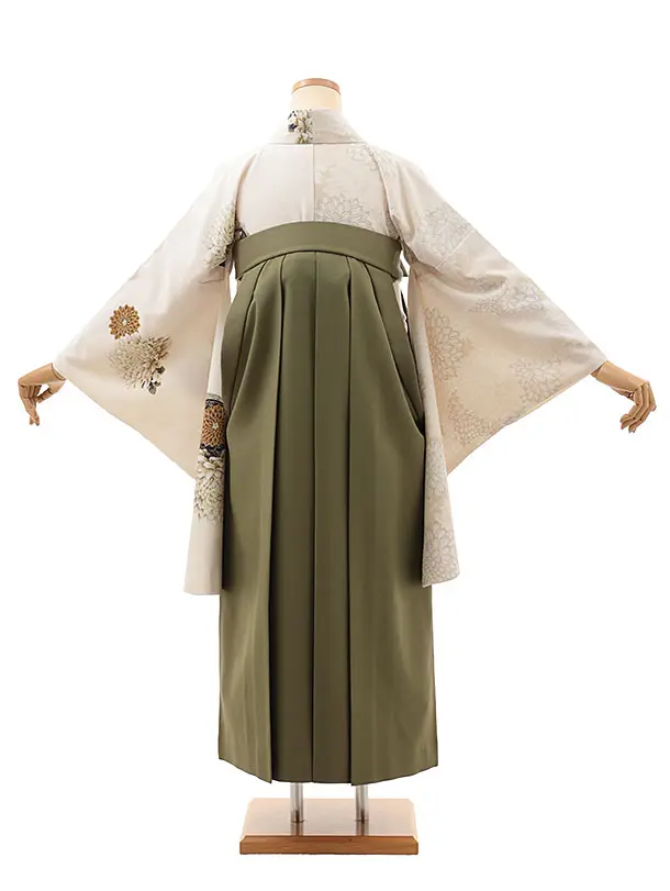 卒業式袴レンタルV636 JAPAN STYLE クリーム片身替り×モスグリーン