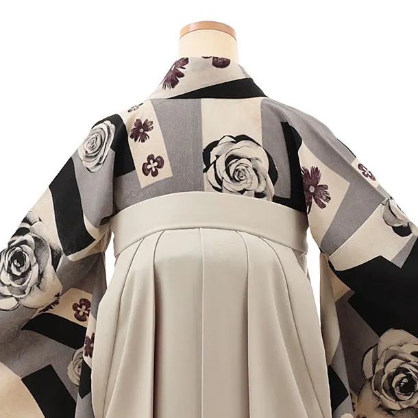 卒業式袴レンタルV640 モダンアンテナ グレー薔薇×ベージュピンク