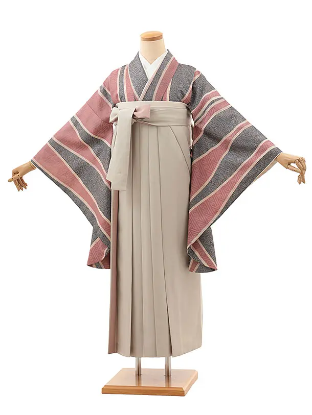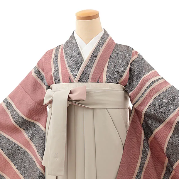 卒業式袴レンタルV642 モダンアンテナ モーヴピンクタテワク×ベージュピンク
