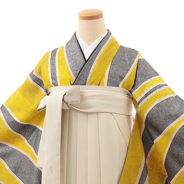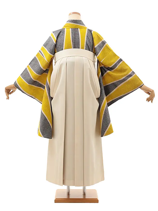 卒業式袴レンタルV644 モダンアンテナ イエロータテワク×クリームベージュ