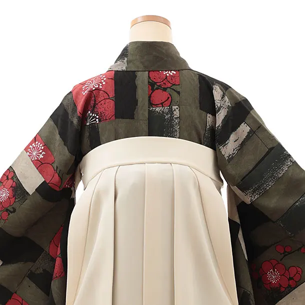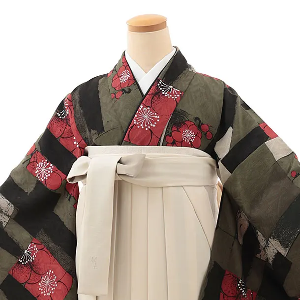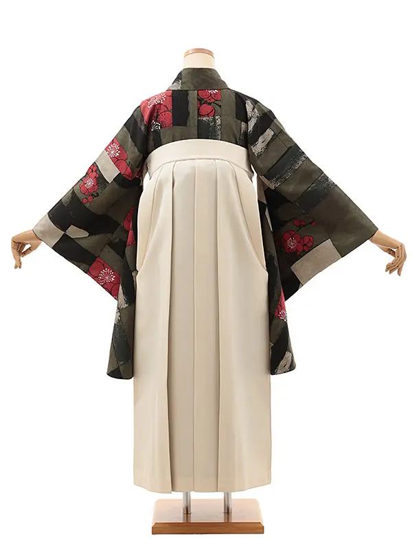 卒業式袴V646 モダンアンテナ モスグリーンブラック梅×クリームベージュ