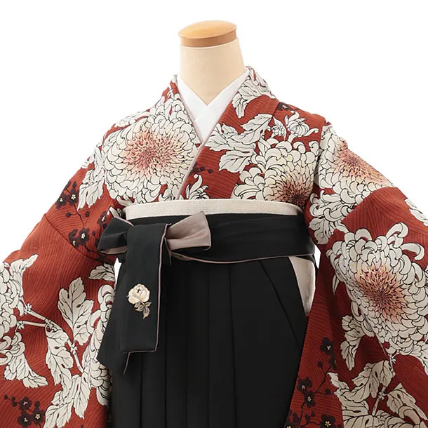 卒業式袴レンタルV652 そしてゆめ テラコッタ乱菊×黒