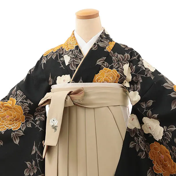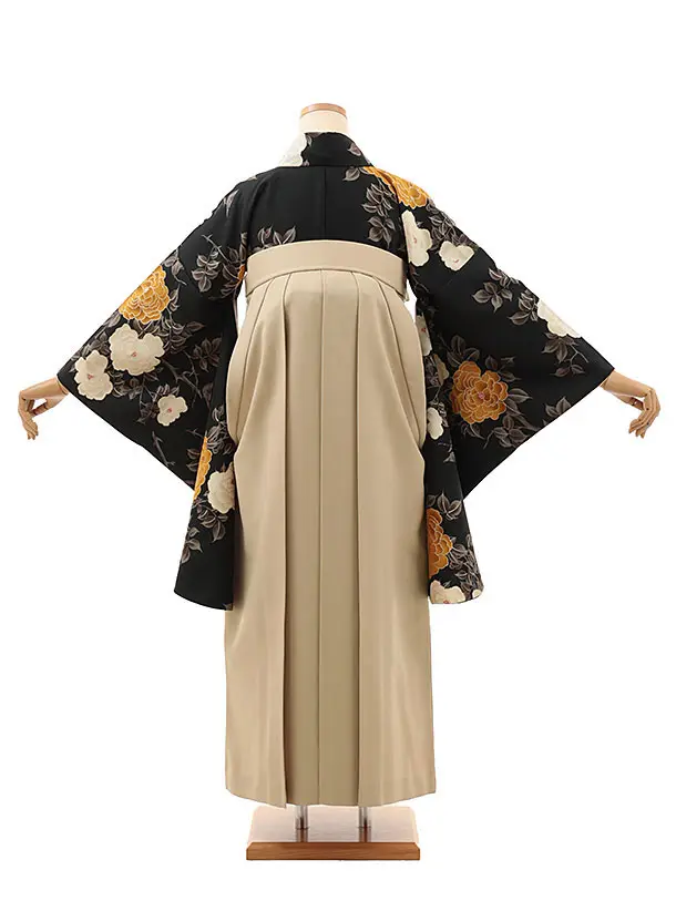 卒業式袴レンタルV656 そしてゆめ 黒枝花×モカベージュ