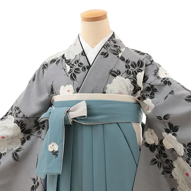 卒業式袴レンタルV657 そしてゆめ グレー枝花×ブルーグレー