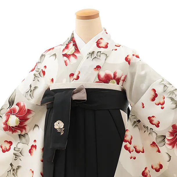卒業式袴レンタルV659 そしてゆめ 薄グレージュ雪椿×黒