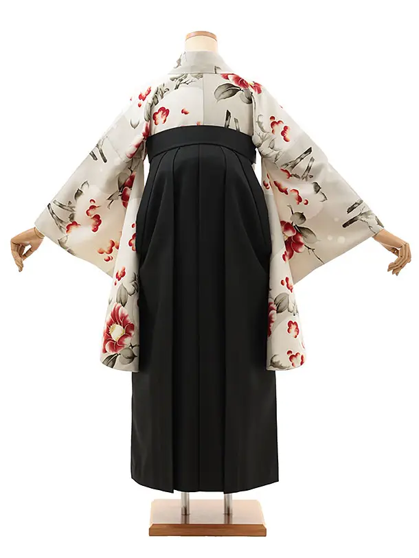 卒業式袴レンタルV660 そしてゆめ 薄グレージュ雪椿×黒