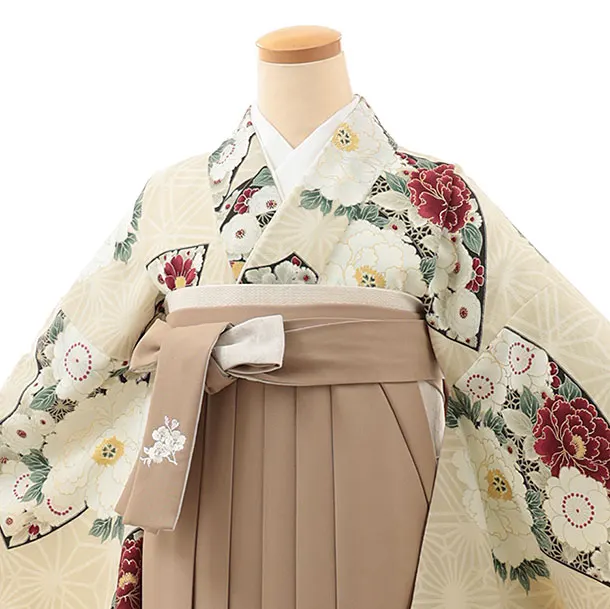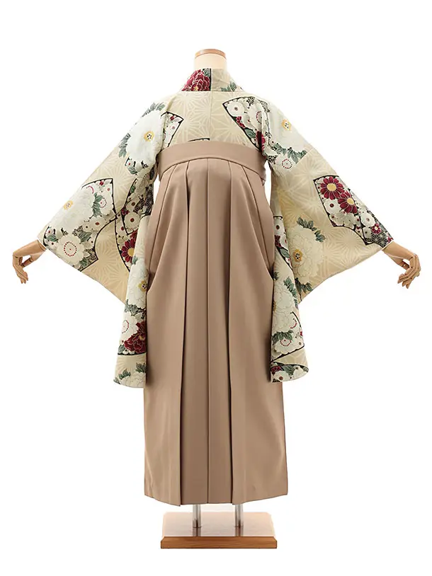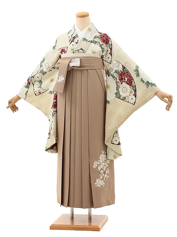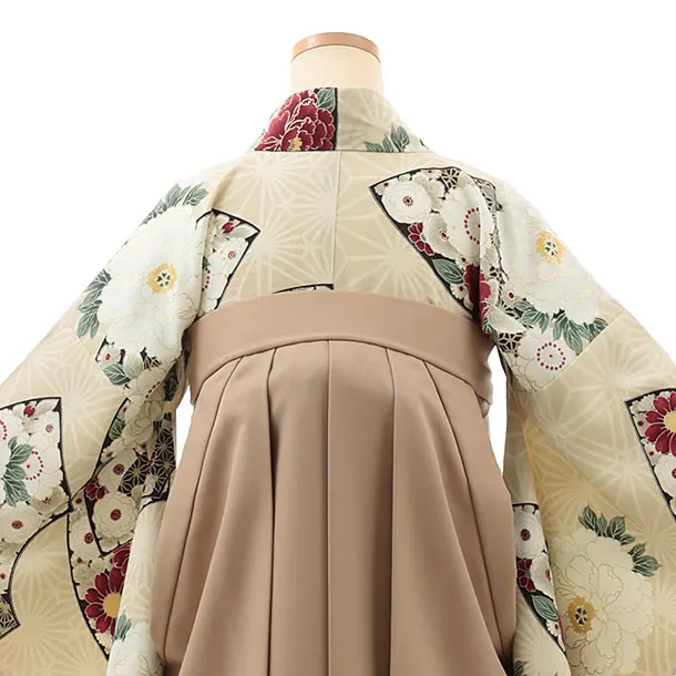 卒業式袴レンタルV665 九重 ベージュ牡丹花扇×モカブラウン