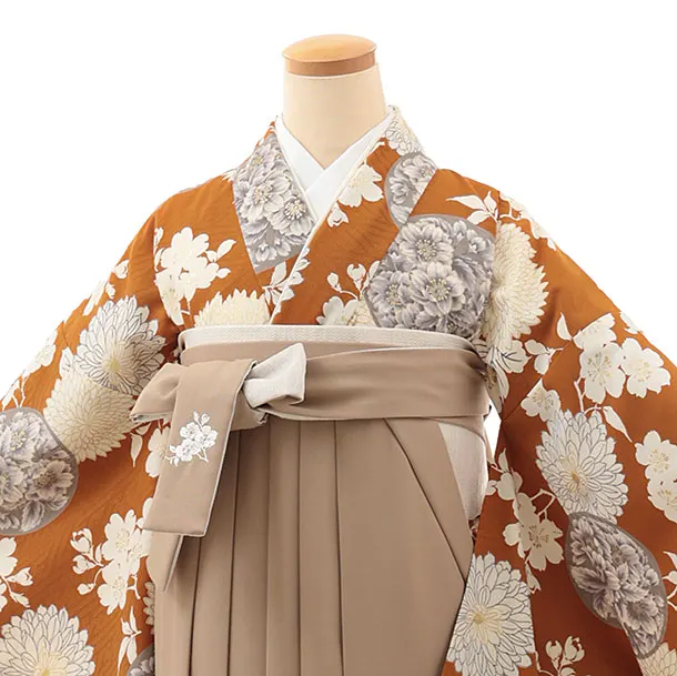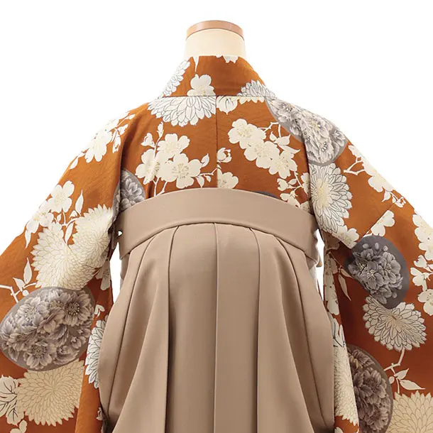 卒業式袴レンタルV669 九重 キャメル菊と桜紋×モカブラウン