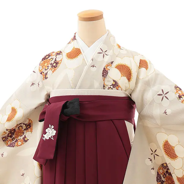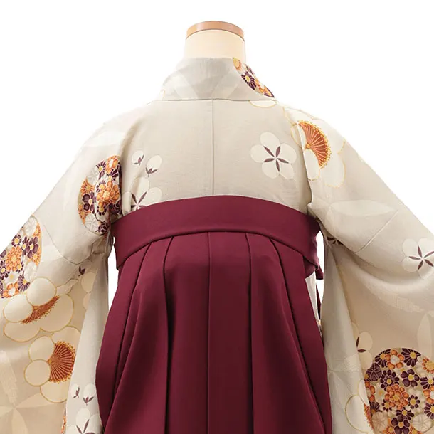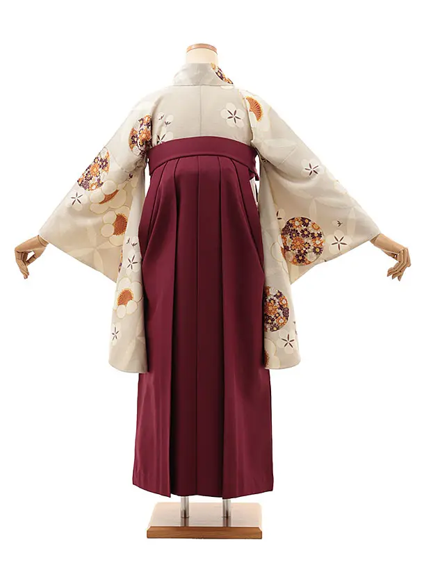 卒業式袴レンタルV672 九重 グレージュ菊と桜紋×ボルドー