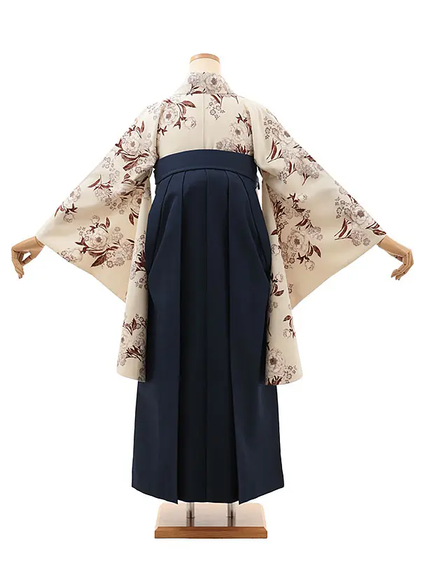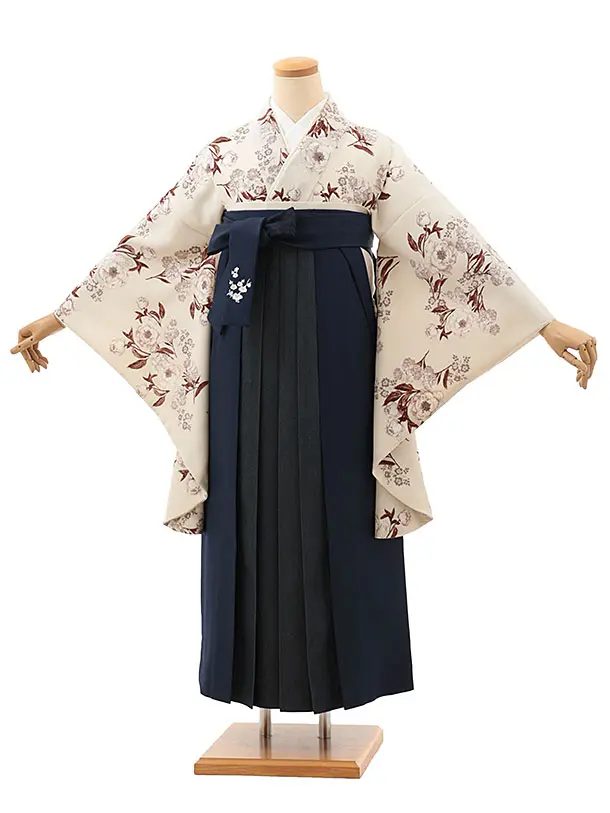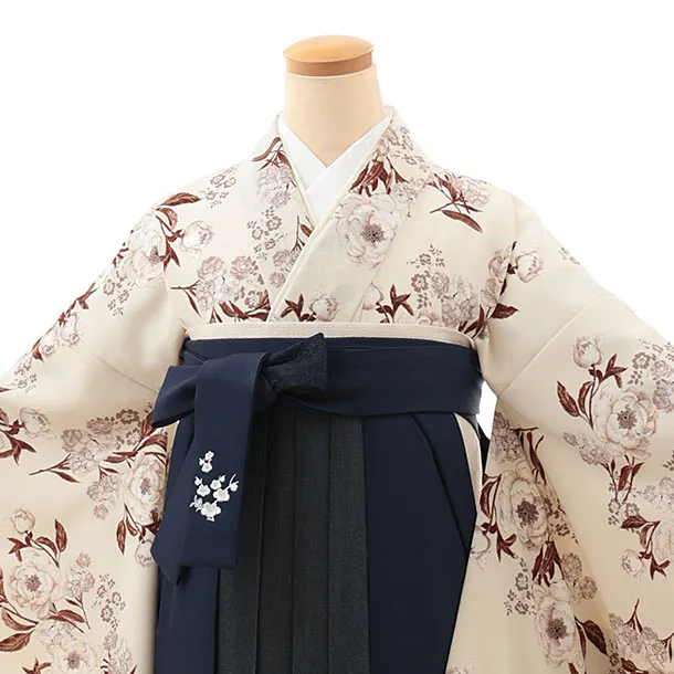 卒業式袴レンタルV675 Heather クリームピオニー×デニム切り替え