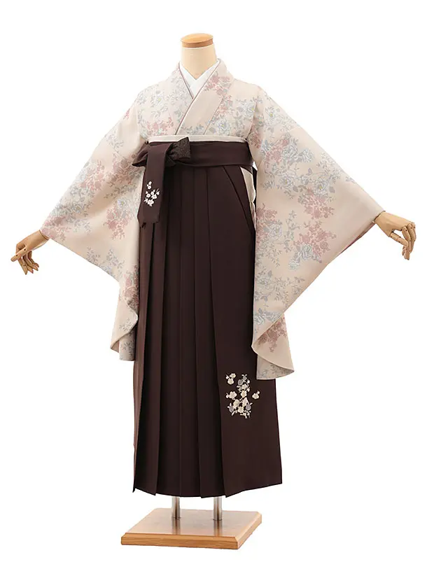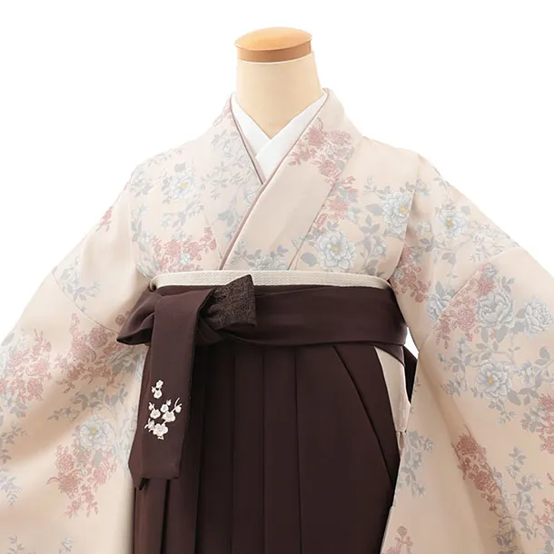 卒業式袴レンタルV678 Heather 淡ピンク花×こげ茶