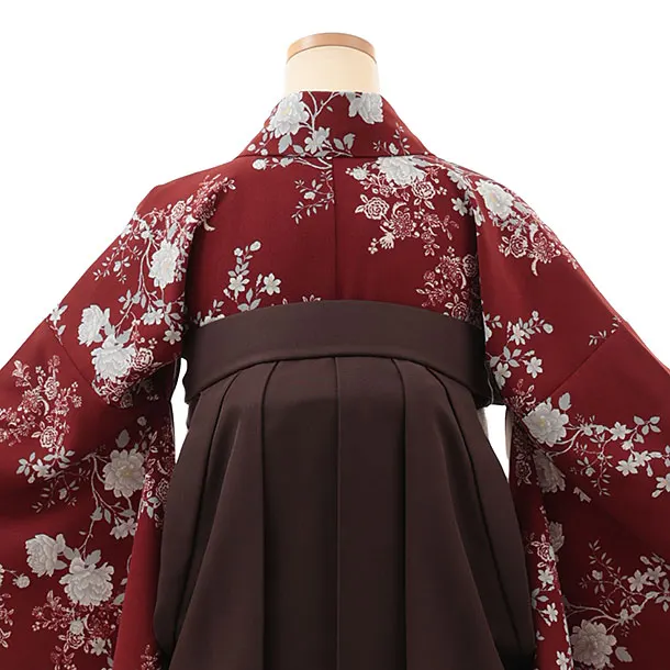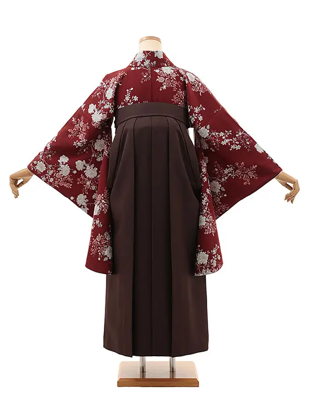 卒業式袴レンタルV682 Heather テラコッタブラウン花×こげ茶