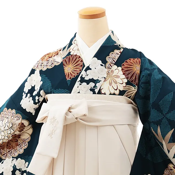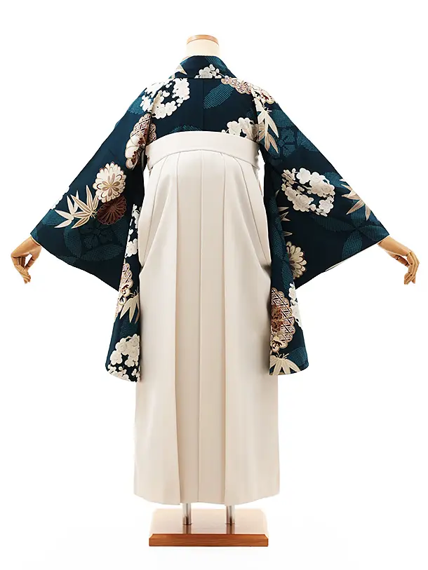 卒業式袴レンタルV685 Kansai オーシャンブルー梅菊×アイボリー