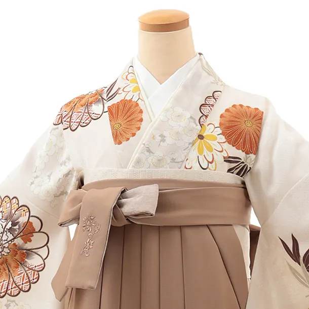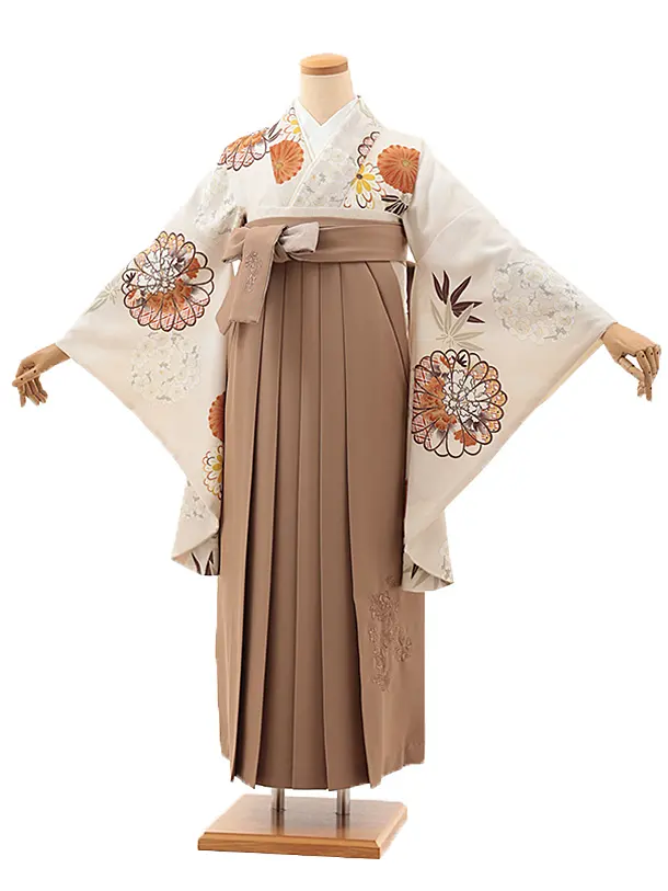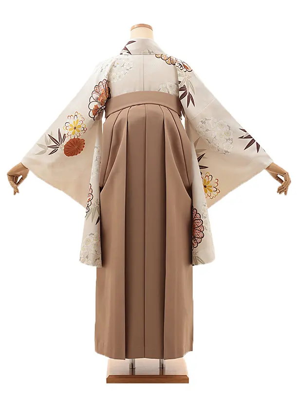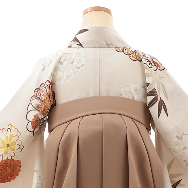 卒業式袴レンタルV690 Kansai 薄ベージュ梅菊×モカブラウン