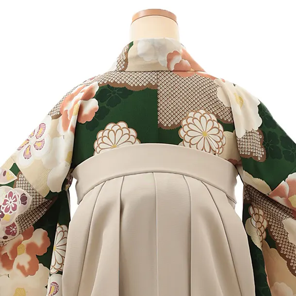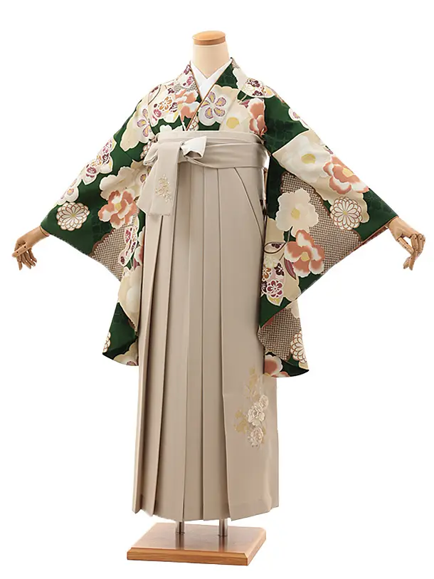 卒業式袴レンタルV692 Kansai グリーン椿橘×ベージュ