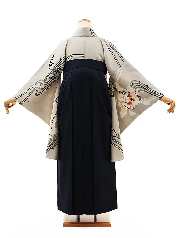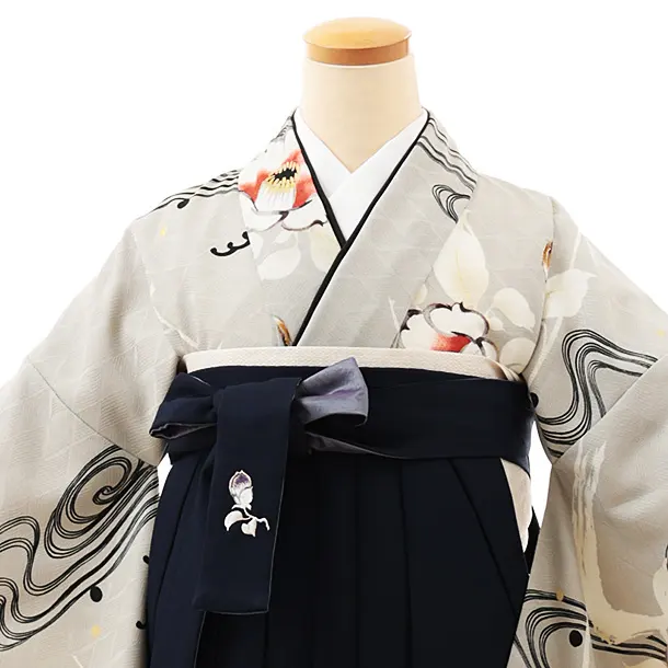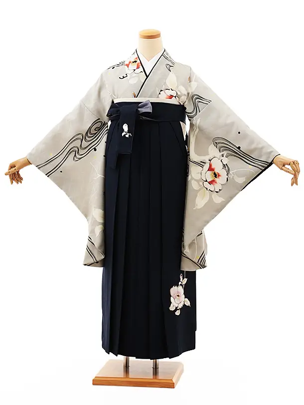 卒業式袴レンタルV695 そしてゆめ 流水椿グレー×紺