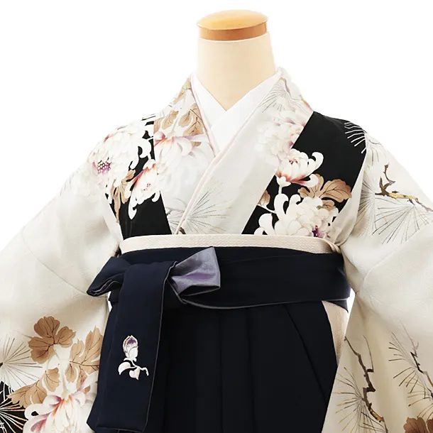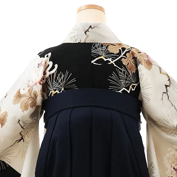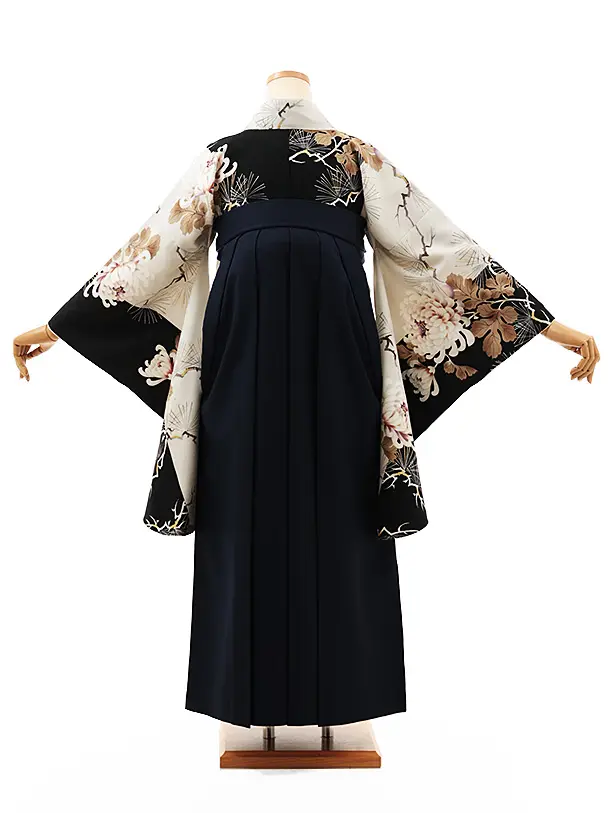 卒業式袴レンタルV696 そしてゆめ 昼夜菊松黒×紺
