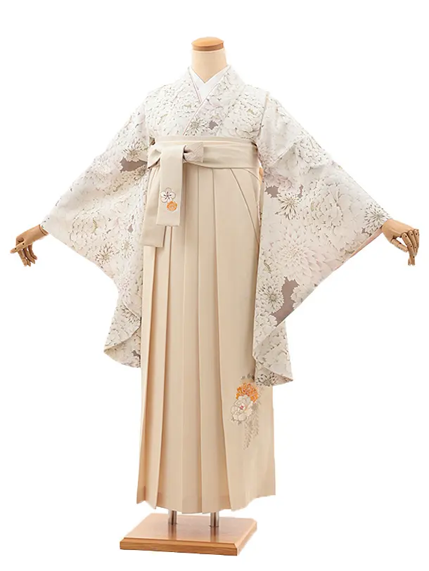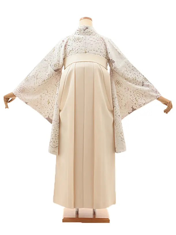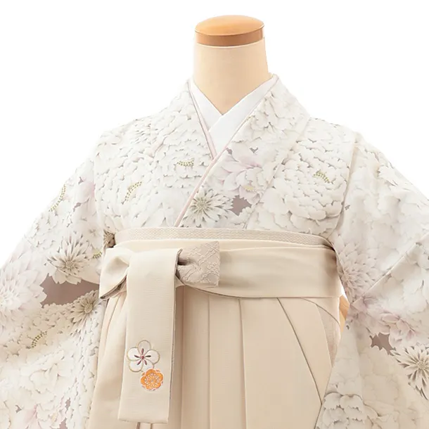 卒業式袴レンタルV699 グレージュ花づくし×クリーム