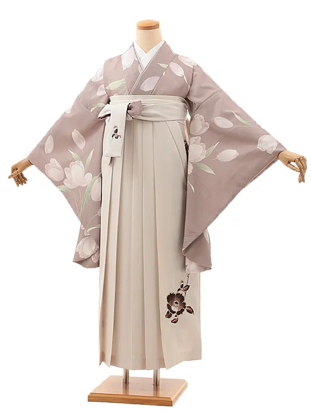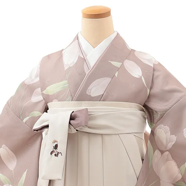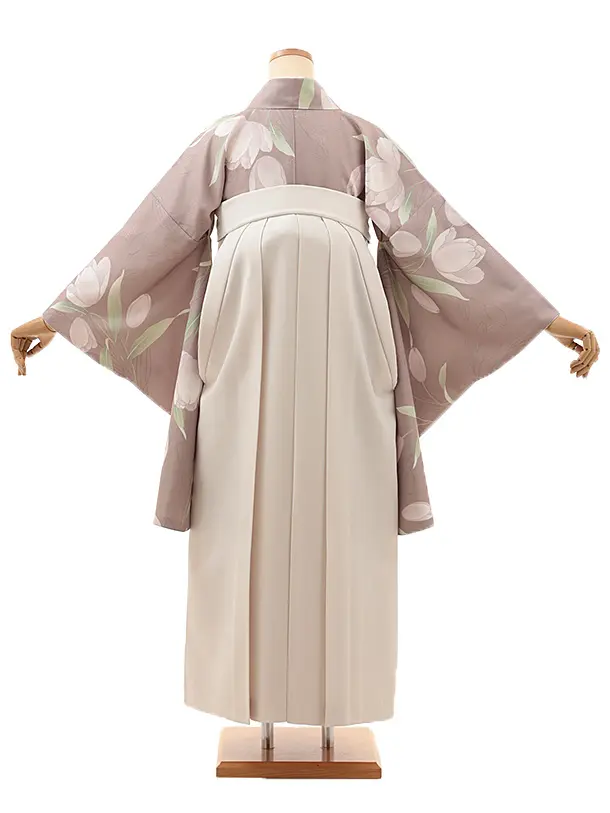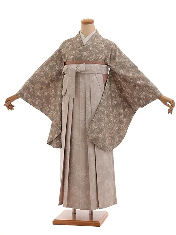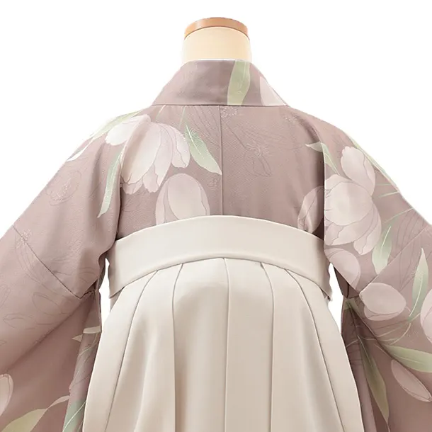 卒業式袴レンタルV706 スモーキーベージュガーデン×アイボリー