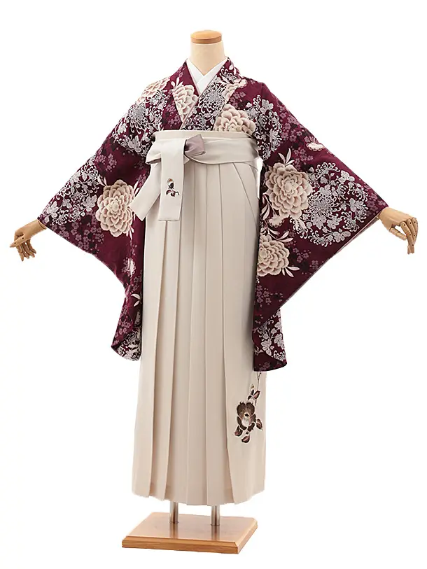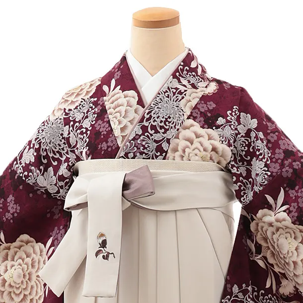 卒業式袴レンタルV707 そしてゆめ 東洋牡丹パープル×アイボリー