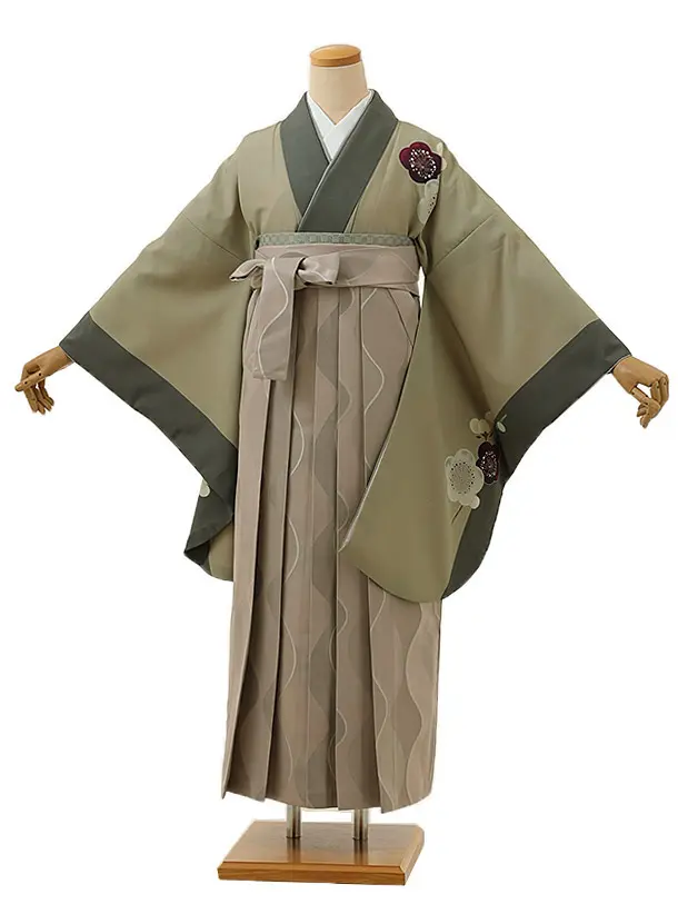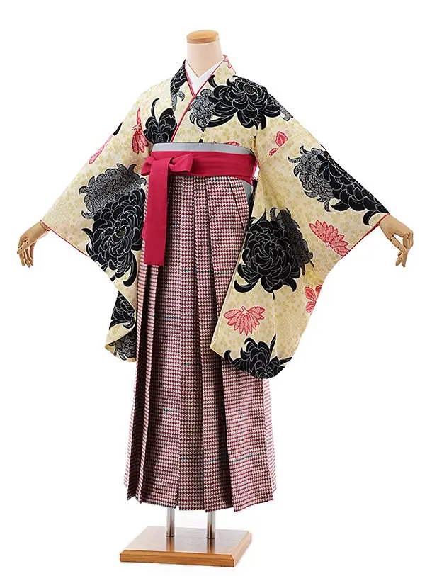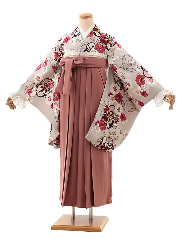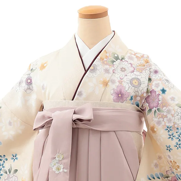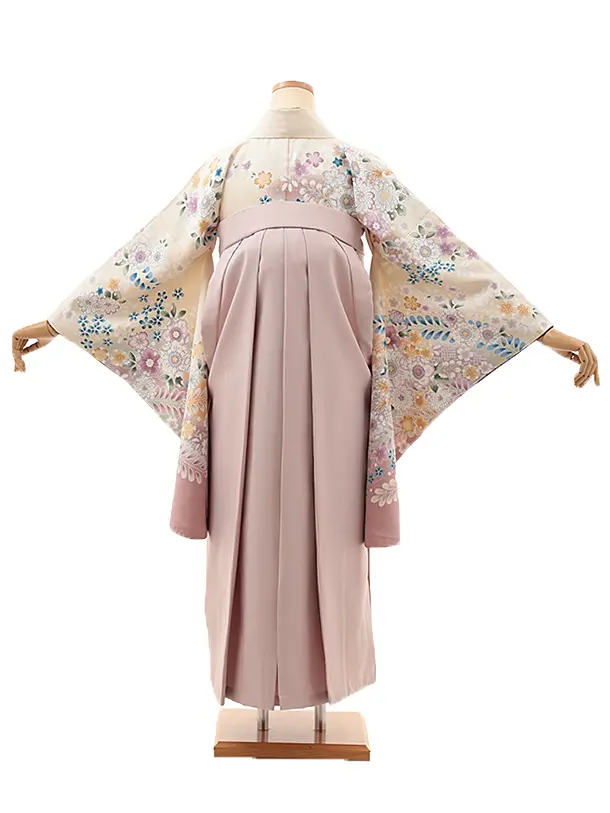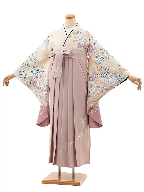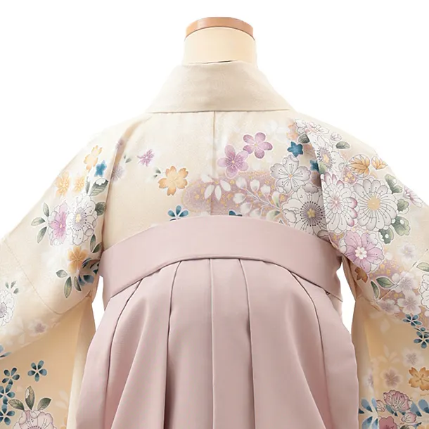 卒業式袴レンタルV710 クリーム花づくし×スモーキーピンク