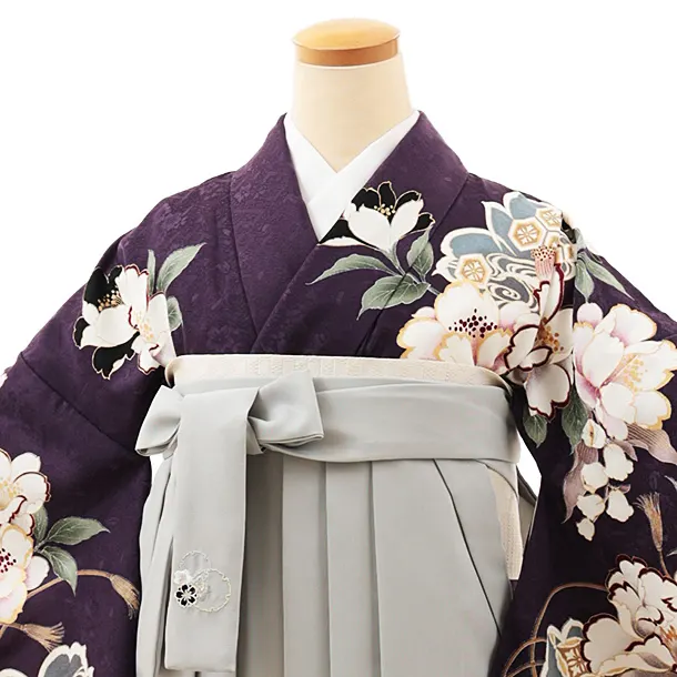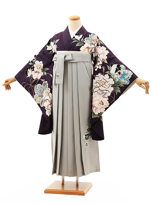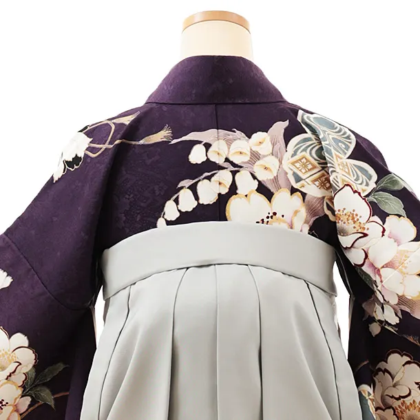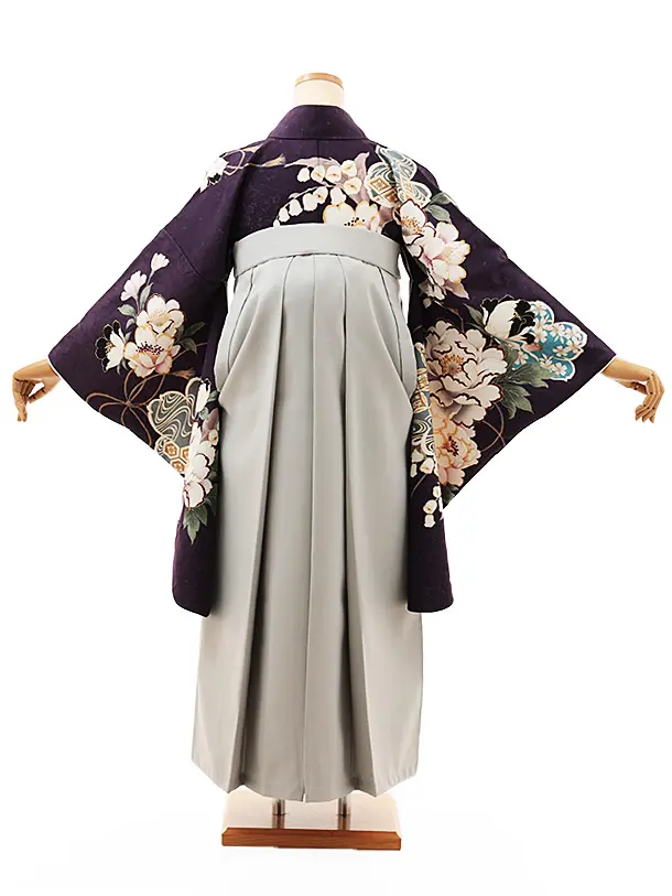 卒業式袴レンタルV725 パープル地牡丹×グレー