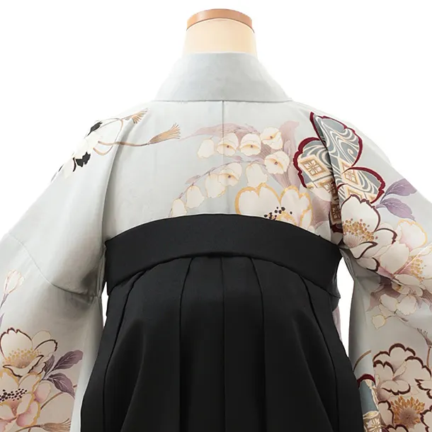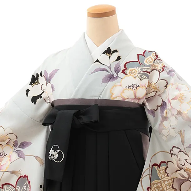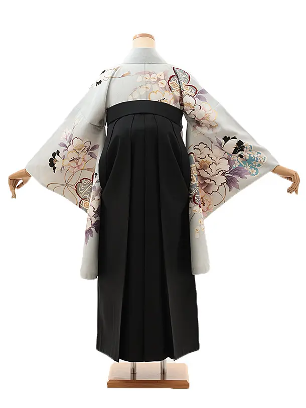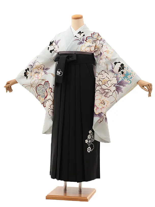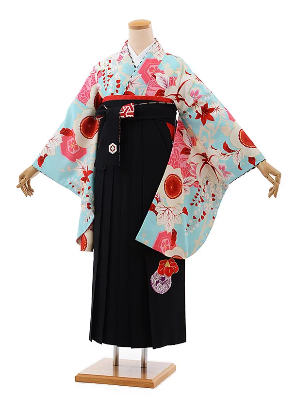 卒業式袴レンタルV730 ペールブルー地牡丹×黒