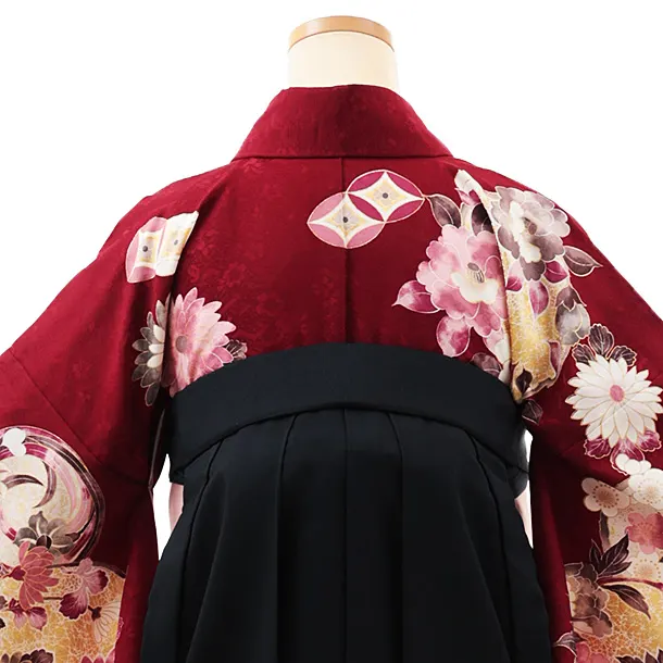 卒業式袴レンタルV745 ワイン地 波花づくし×紺