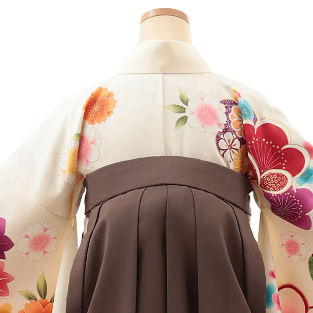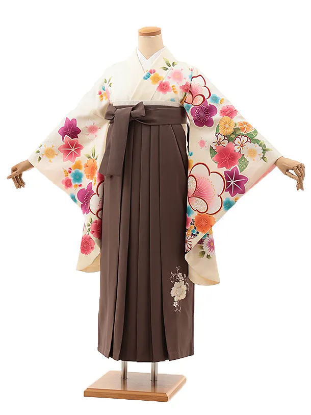 卒業式袴レンタルV754 クリーム地 古典梅菊×ブラウン