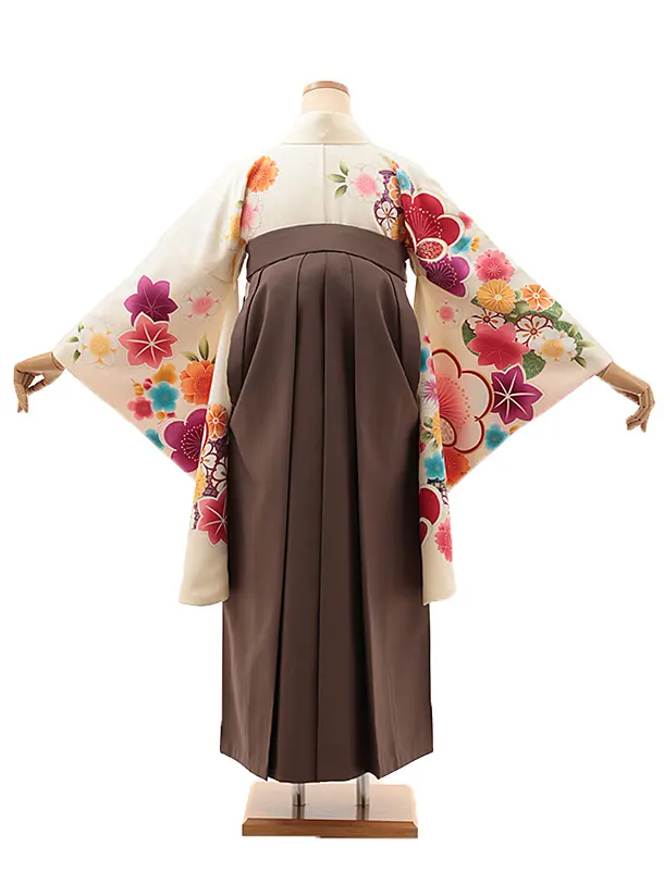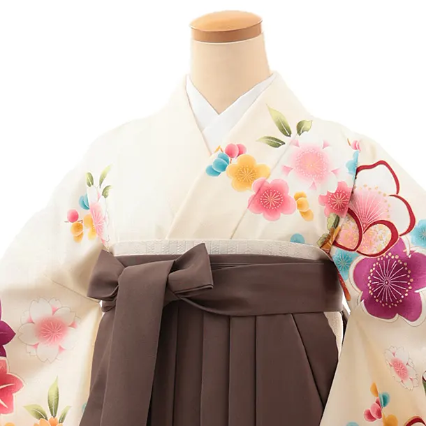 卒業式袴レンタルV755 クリーム地 古典梅菊×ブラウン