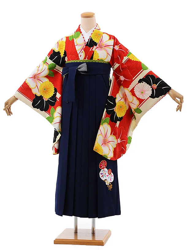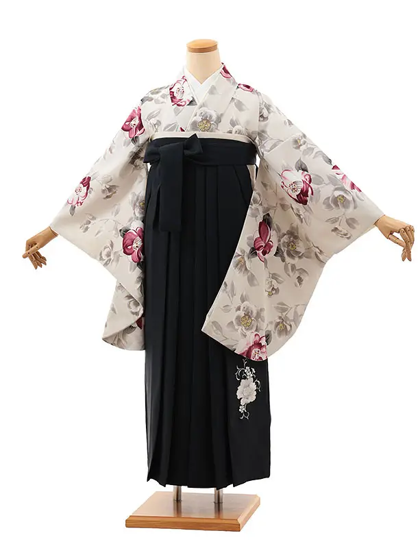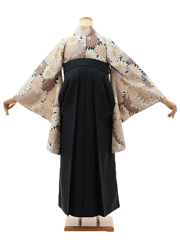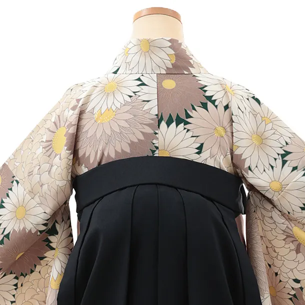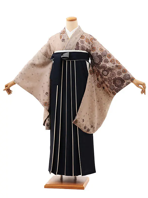 卒業式袴レンタルV777 ベージュ菊花づくし×紺