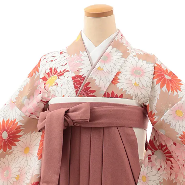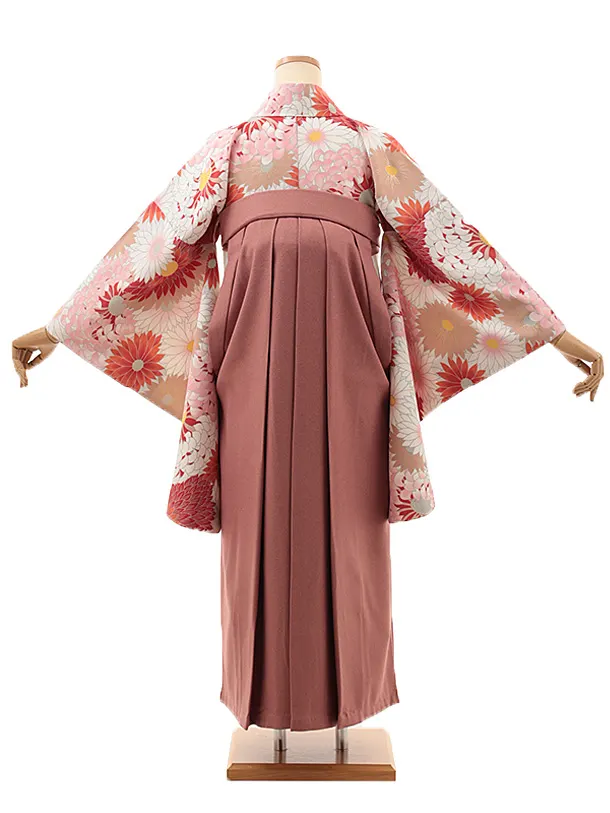 卒業式袴レンタルV781 ピンクベージュ菊花づくし×ポリツィードピンク