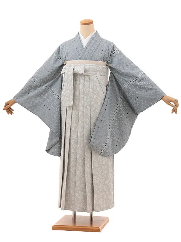 卒業式袴レンタルV782 グレー水彩花×グレーぼかし