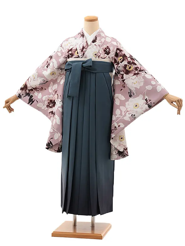 卒業式袴レンタルV786 ペールパープル水彩花×ブルーぼかし