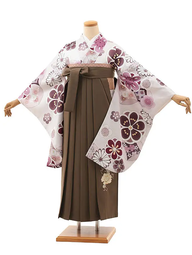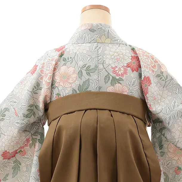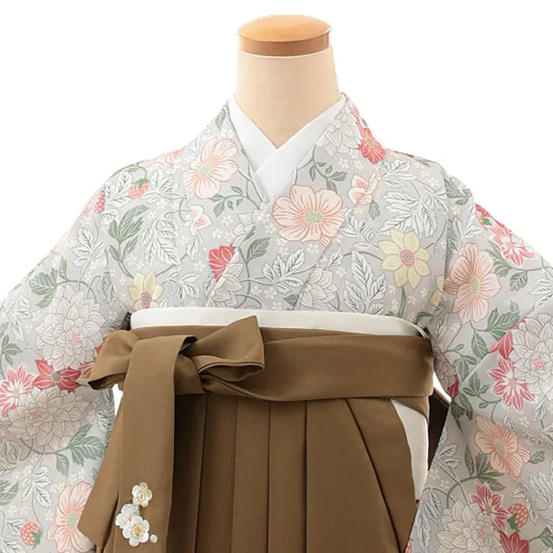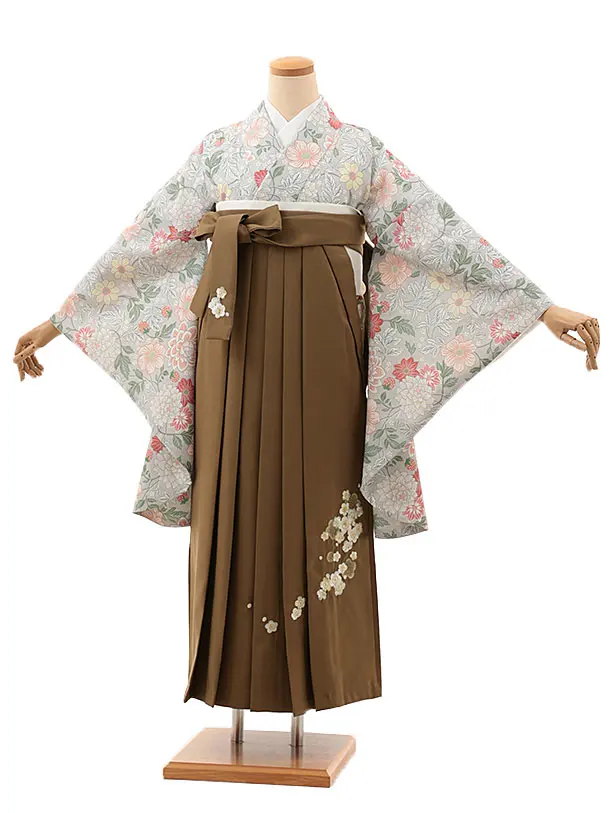 卒業式袴レンタルV793 グレー野花×ブラウン