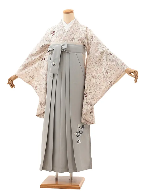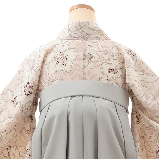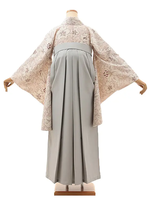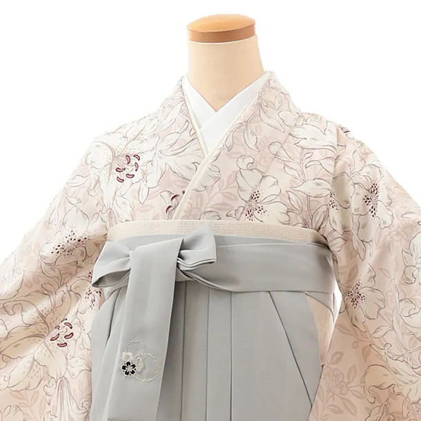 卒業式袴レンタルV797 薄ピンク百合×グレー