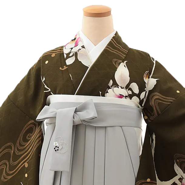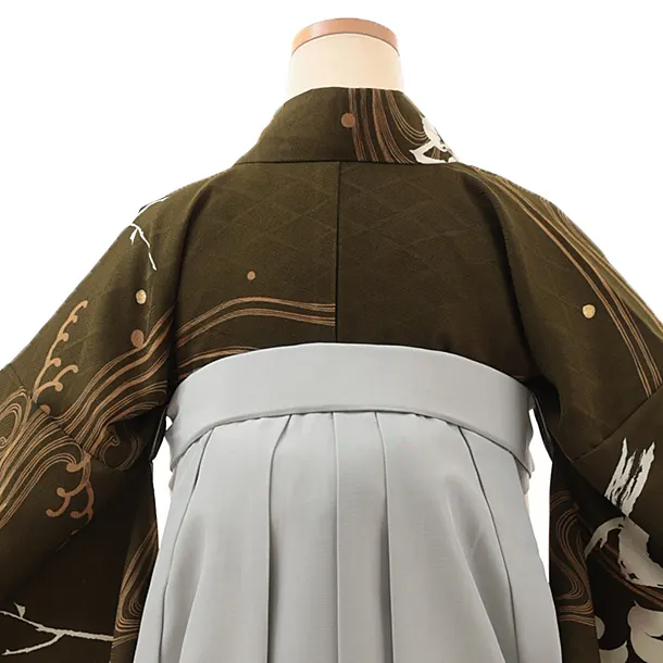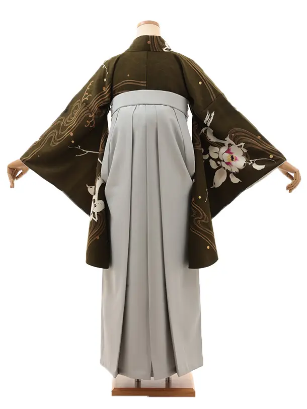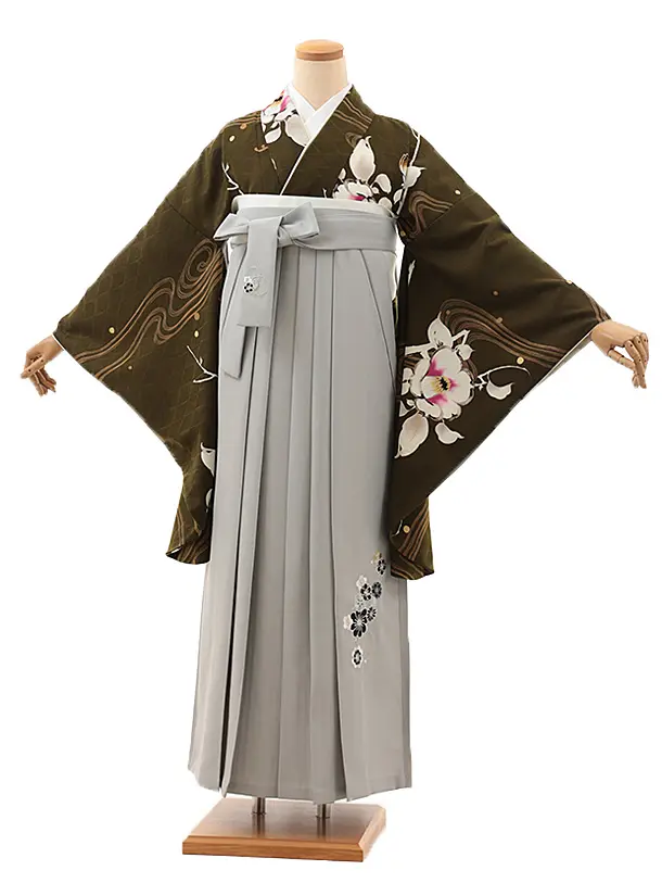 卒業式袴レンタルV799 こけみどり流水×グレー