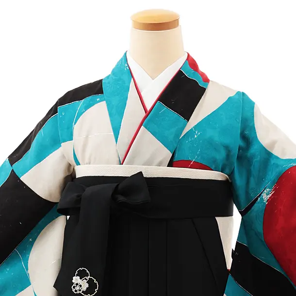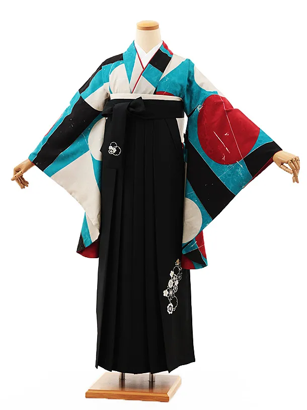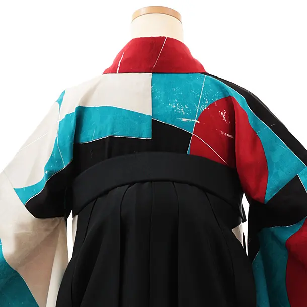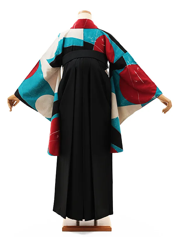 卒業式袴レンタルV802 カラフル幾何学×黒