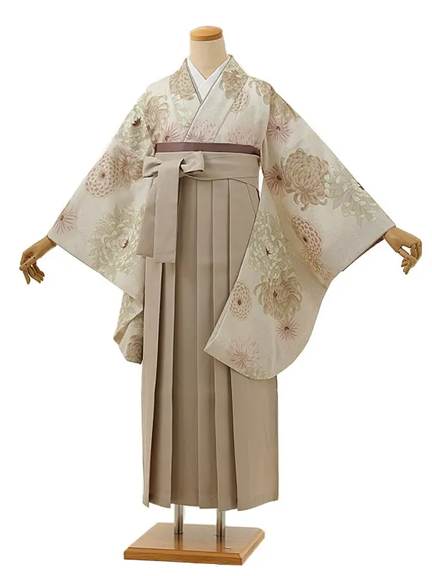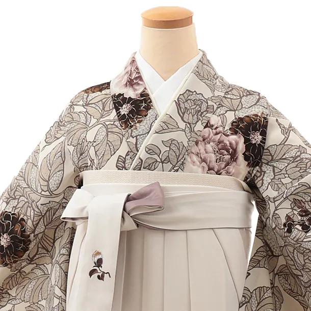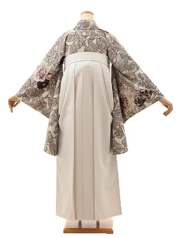 卒業式袴レンタルV803 ベージュ野バラ×アイボリー