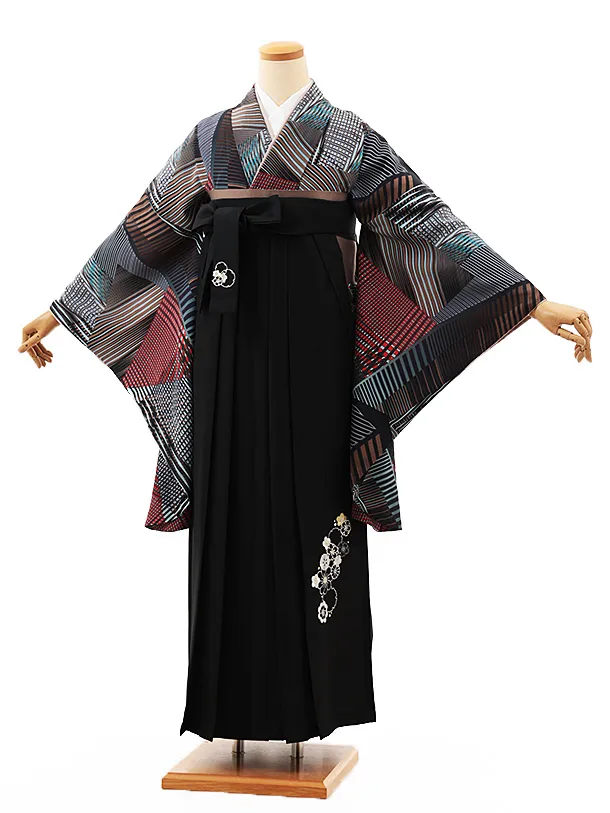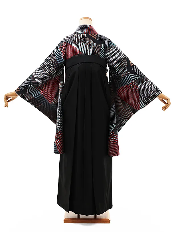 卒業式袴レンタルV807 ブルーブラックアラベスク×黒