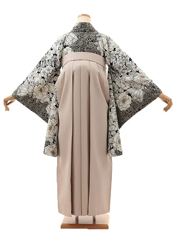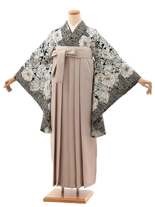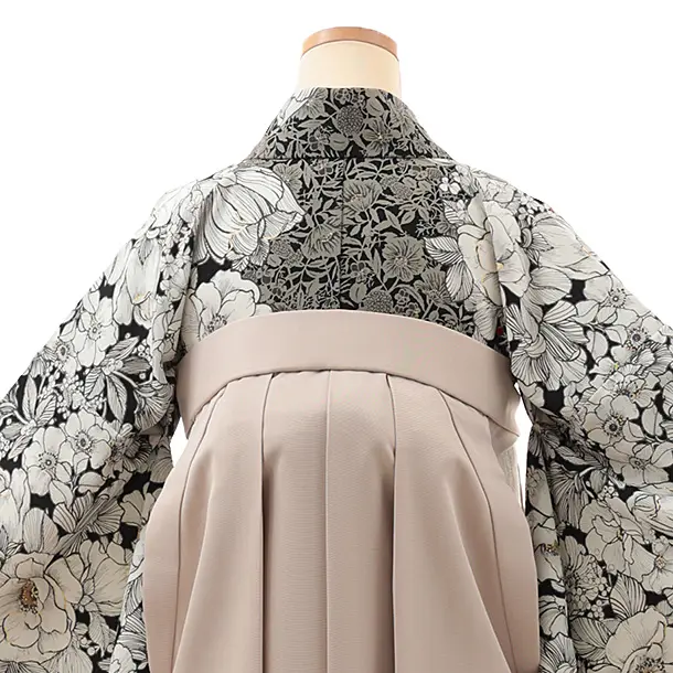 卒業式袴レンタルV808 黒アネモネ×ピンクベージュ