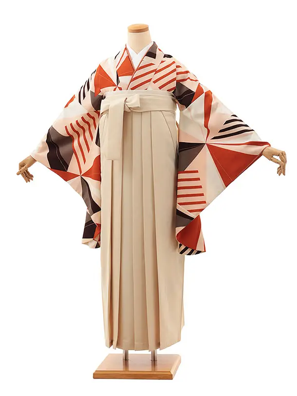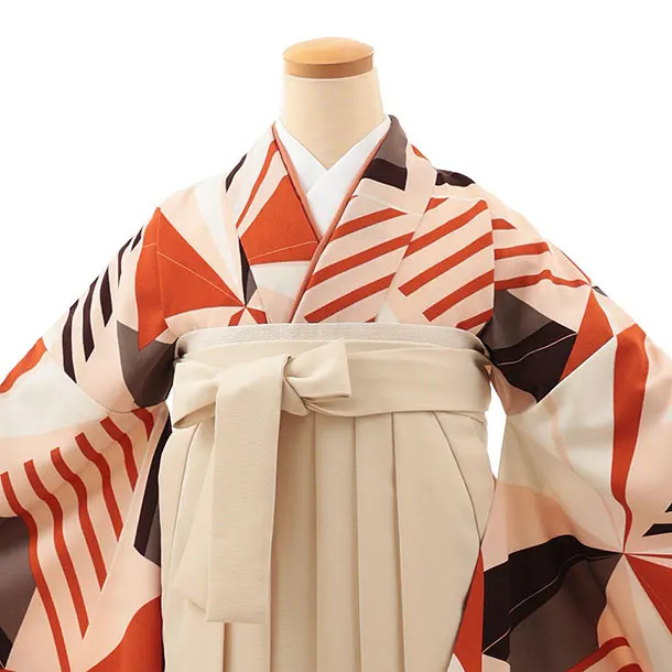卒業式袴レンタルV810 ピンクテラコッタジオ×クリームベージュ