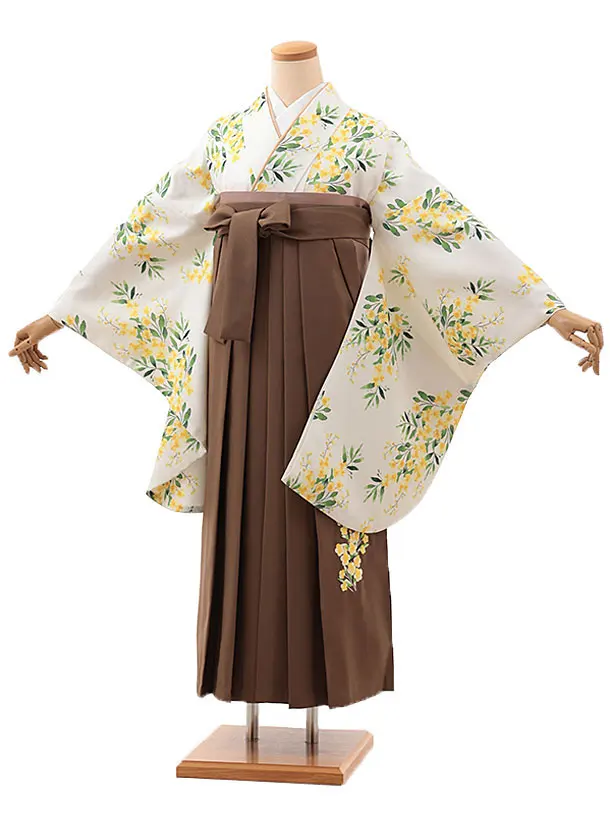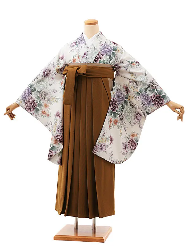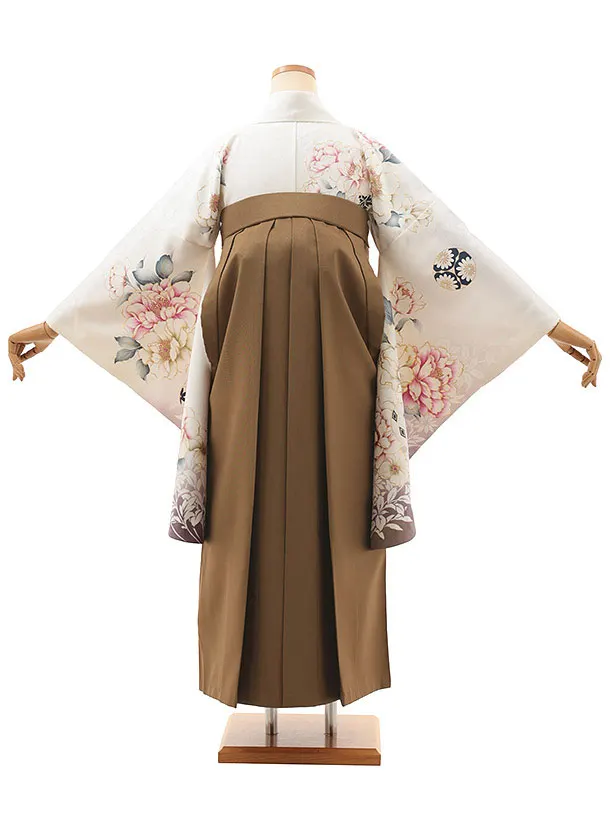 卒業式袴レンタルV815 白地 鞠牡丹×ブラウン
