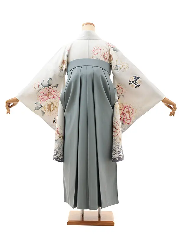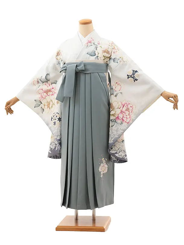 卒業式袴レンタルV816 ペールブルー鞠牡丹×グレー