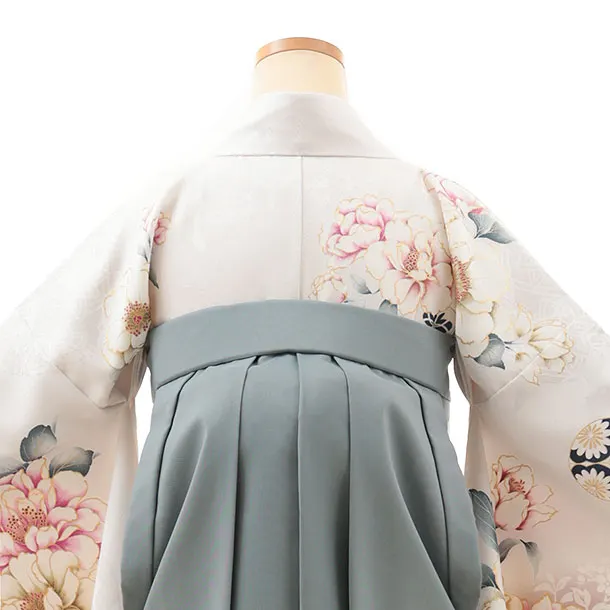 卒業式袴レンタルV821 白地 鞠牡丹×グレー