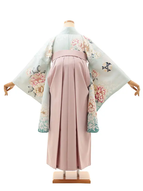 卒業式袴レンタルV822 水色 鞠牡丹×ピンク