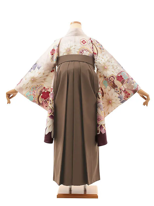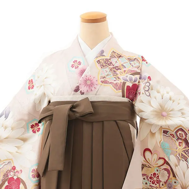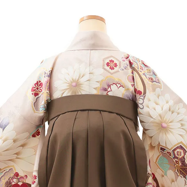卒業式袴レンタルV827 薄ベージュ古典花×ブラウン